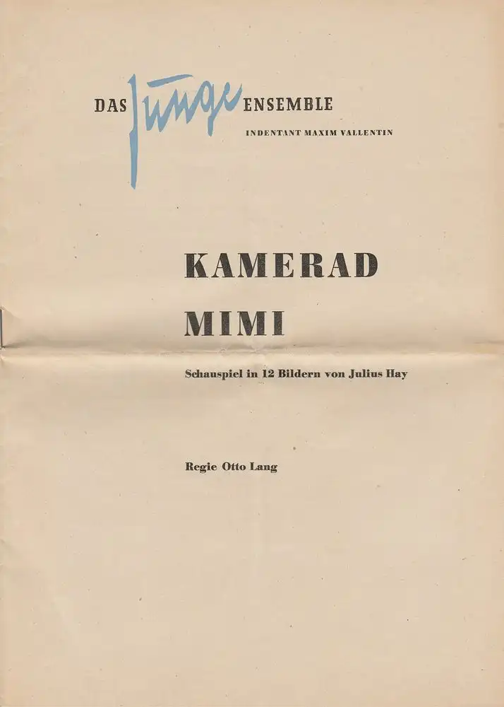 Das Junge Ensemble Weimar, Maxim Vallentin: Programmheft Julius Hay KAMERAD MIMI Premiere 5. Juli 1949.