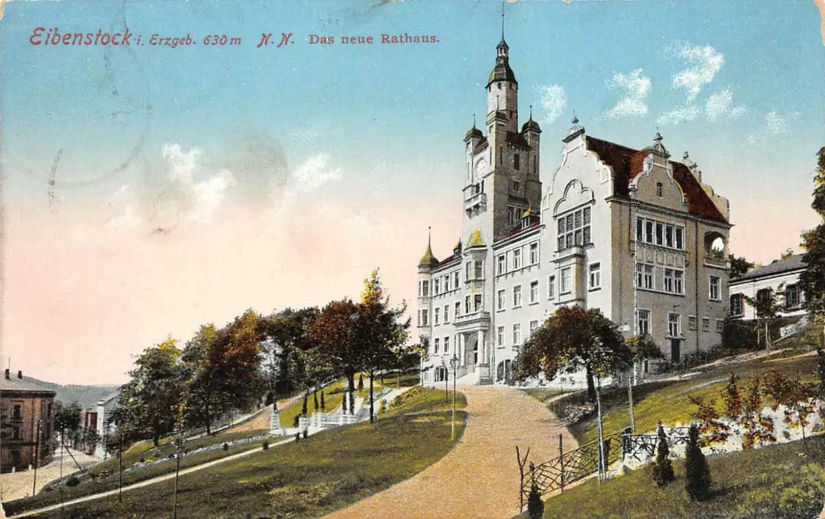 Das neue Rathaus Eibenstock Erzgebirge Sachsen Postkarte AK 1913