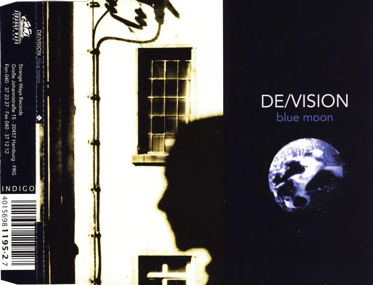 CD Single De/Vision - Blue Moon, état CD VG+ Hülle M-; Fabriqué en Allemagne 1995 Strange Way 1195-2, Tracks [Radio Edit] 3:36, [12" Mix] 5:49, Rêves infinis 4:23, Someone To Draw The Sword 3:45