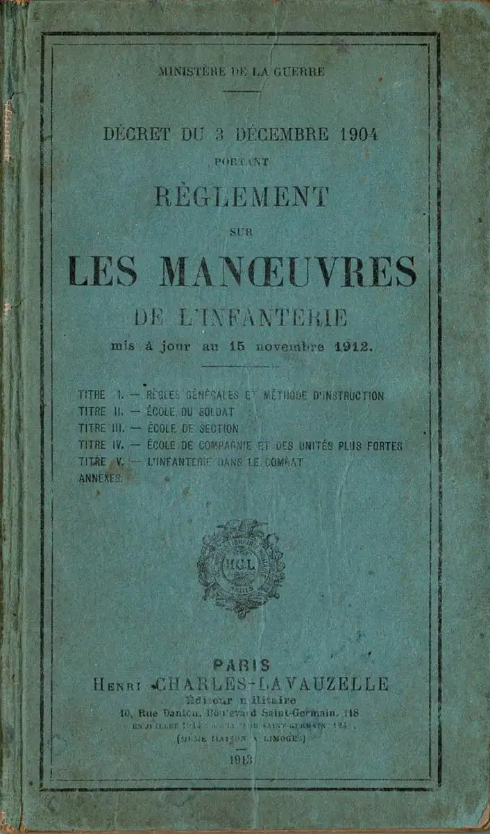 Décret du 3 Décembre 1904 portant réglement sur les manoeuvres de l'infanterie mis á jour au 15 novembre 1912.