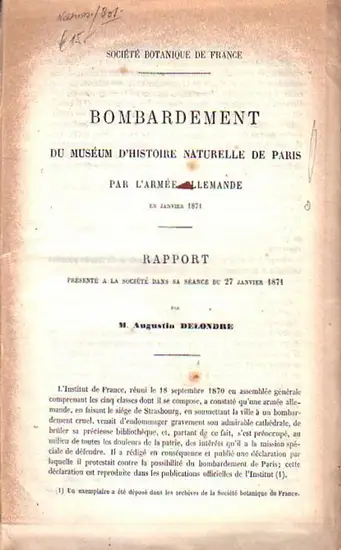 Delondre, M. Augustin: Bombardement du Muséum d´histoire naturelle de Paris par l´armée Allemande en Janvier 1871. Rapport présenté a la Société dans sa séance du 27 Janvier 1871. Société Botanique de France.