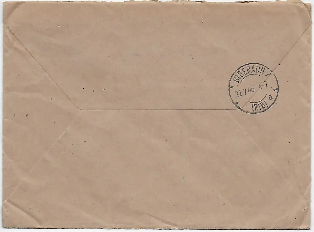 Demmin 1946 en recommandé à Bellamont/Biberach