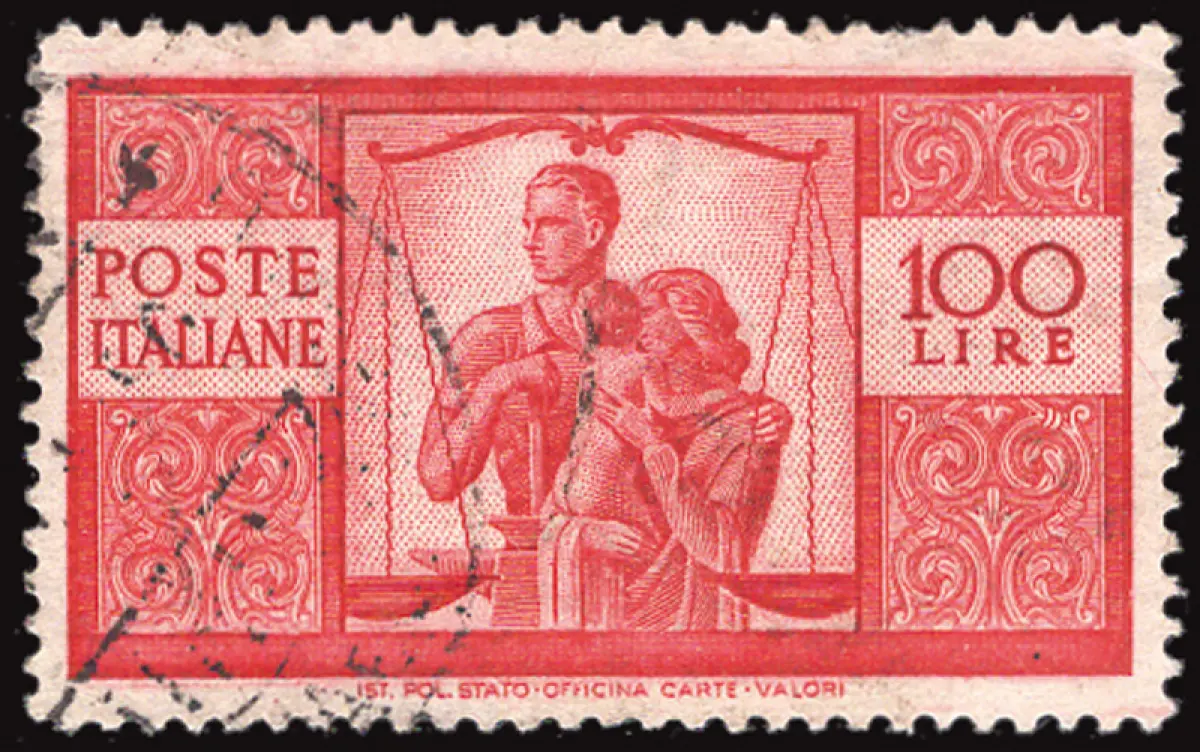 GEBRAUCHT - Democratica Lire 100 Nr. 565 zweite Verzahnungsplatte 14 (Sass. spec. n. 23/I) sehr gutes gut zentriertes Exemplar mit Positionsmerkmalen 39 - Ungewöhnlich Cod.581/182