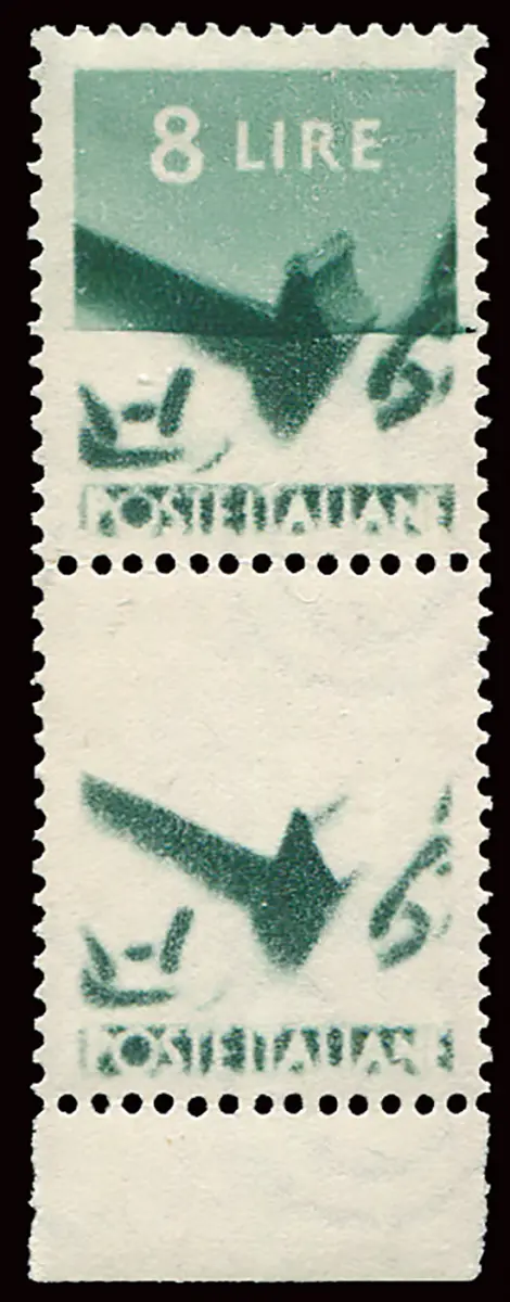 Democratica Lire 8 Paar Sorten Druck unvollständig Vollgummi + Linguellato - Democratica Lire 8 Nr. 557g vertikales Paar mit unvollständigem, vergänglichem Druck - Top-Exemplar mit Linguella-Spur - Selten Cod. 375/15