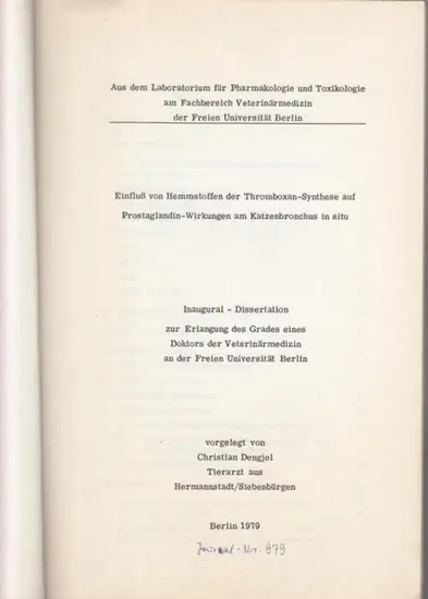 Dengjel, Christian ( geboren 1945 in Hermannstadt in Siebenbürgen ): Einfluß von Hemmstoffen der Thromboxan - Synthese auf Prostaglandin - Wirkungen am Katzenbronchus in situ. Inaugural - Dissertation zur Erlangung des Grades eines Doktors der Veterinärme