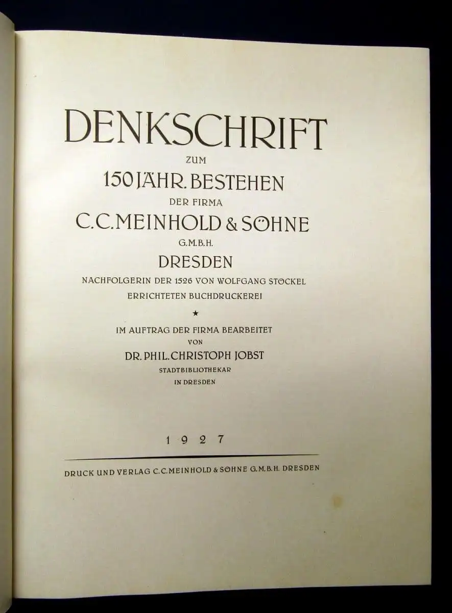 Denkschrift zum 150 Jähr. Bestehen der Firma C.C. Meinhold & Söhne G. M. B. H. Dresden