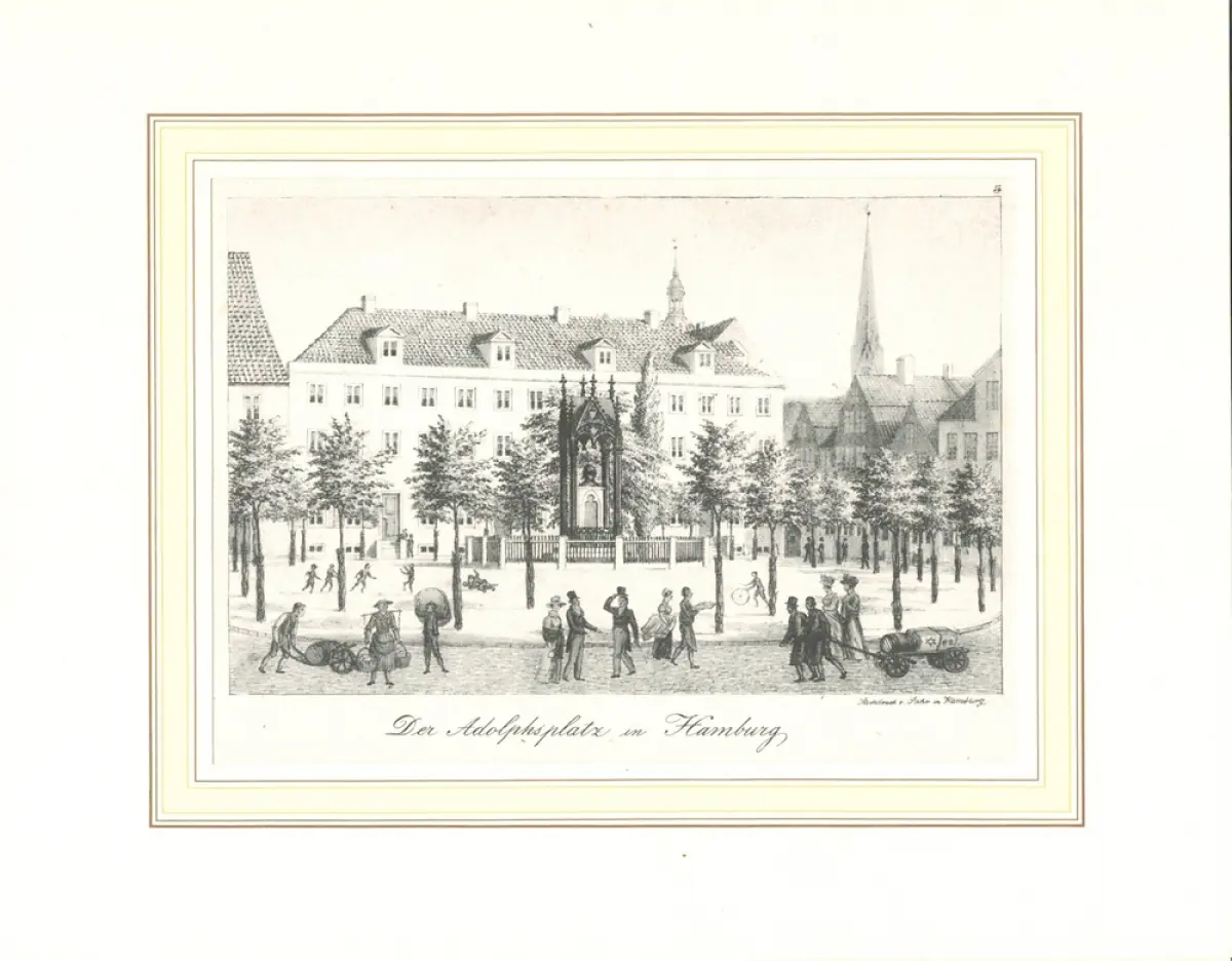 Der Adolphsplatz in Hamburg. Original-Lithographie der Gebrüder Suhr.