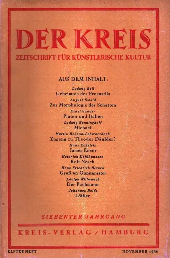 Titel: Der Kreis. Zeitschrift für künstlerische Kultur. JG 7, HEFT 11 | November 1930. (Hrsg. von Ludwig Benninghoff u. Wilhelm Postulart)