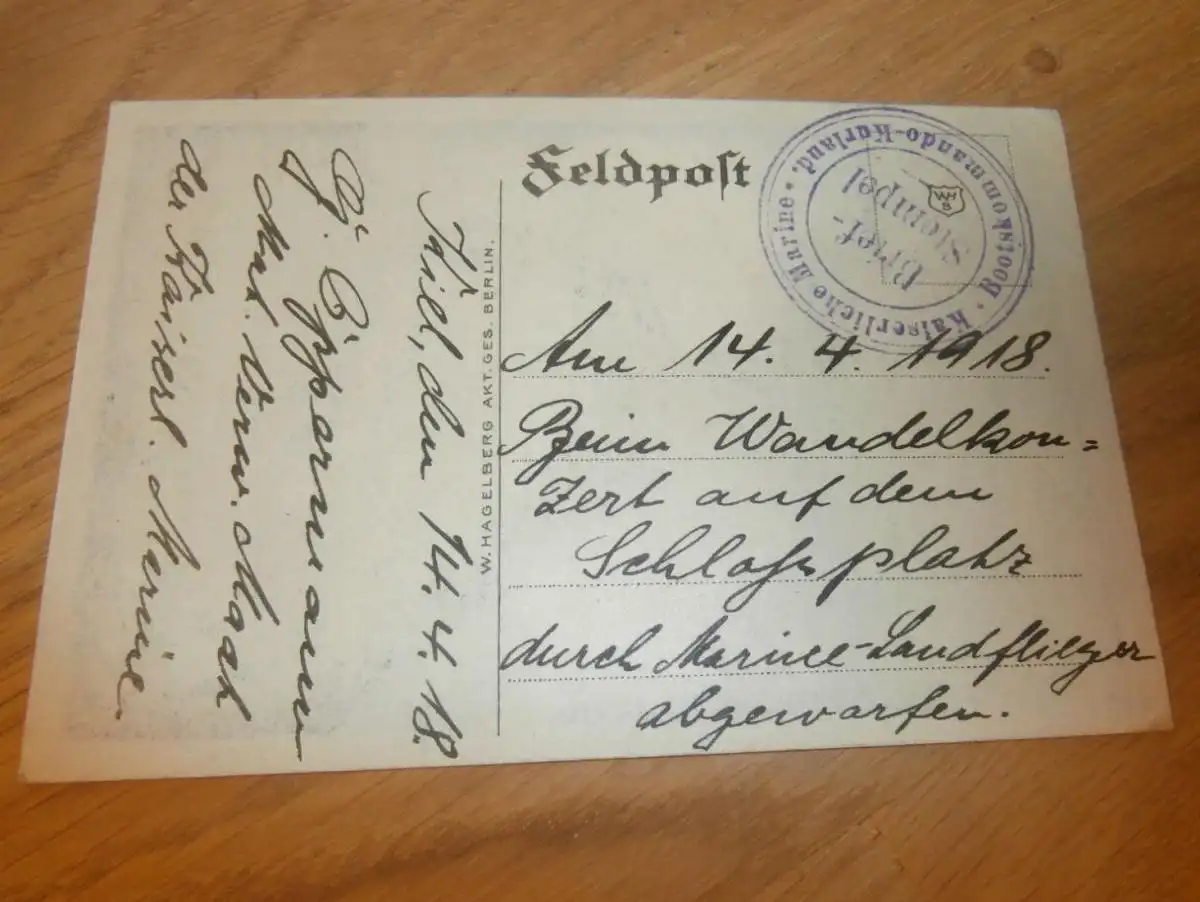 Der letzte Hieb , 8. Kriegsanleihe 1918 , Bootskommando Kurland , Kaiserliche Marine , Sparkasse , Anleihe !! “ Beim Wandelkonzert auf dem Schloßplatz durch Marine-Landflieger abgeworfen ”!AZR-WR