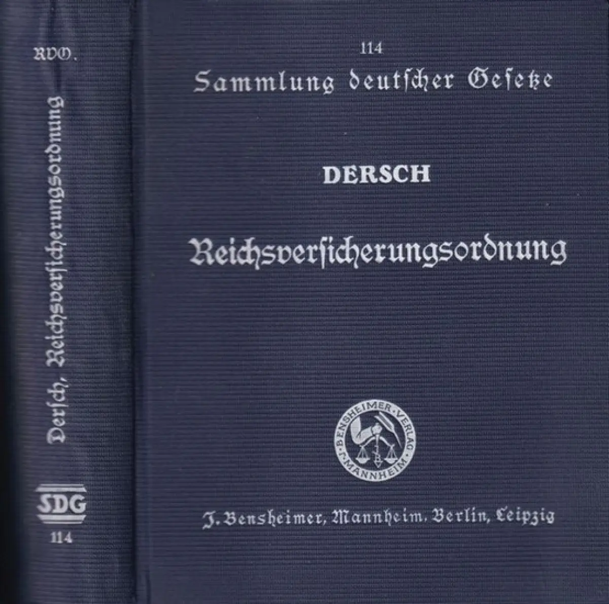 Dersch, Hermann: Die neue Reichsversicherungsordnung - Handausgabe mit kurzen Anmerkungen und einer systematischen Einleitung nebst den wichtigsten Ausführungsbestimmungen ( RVO = Band 114 Sammlung deutscher Gesetze (SDG)).