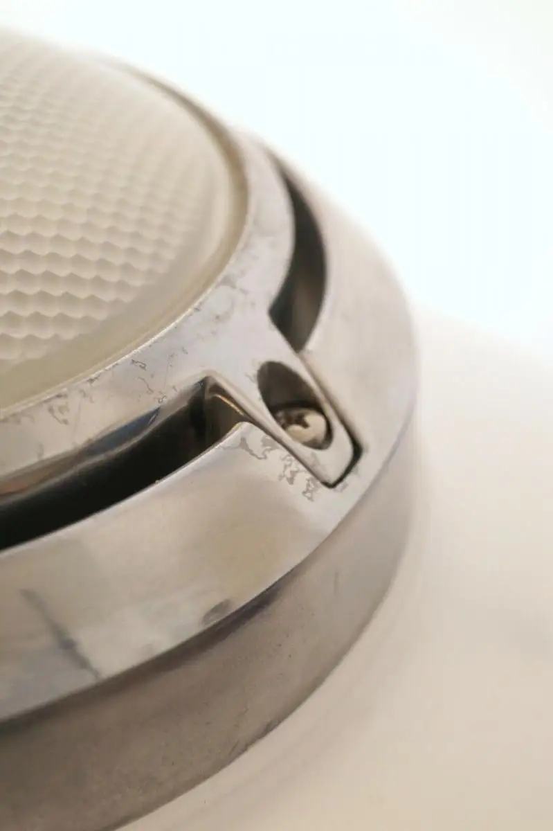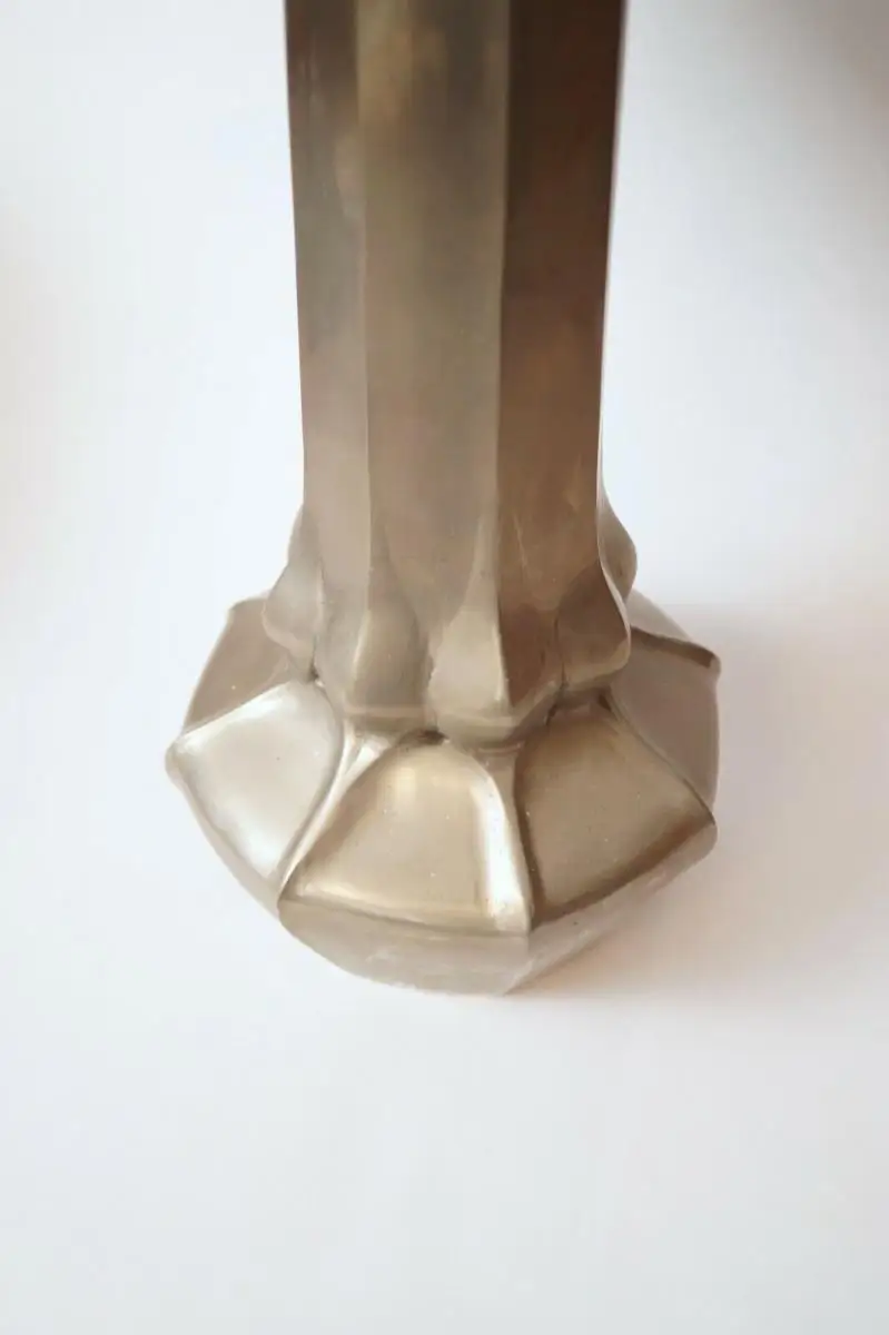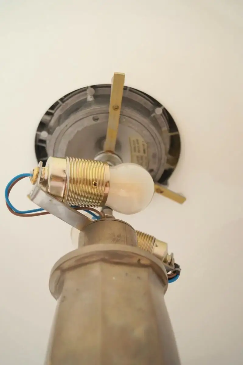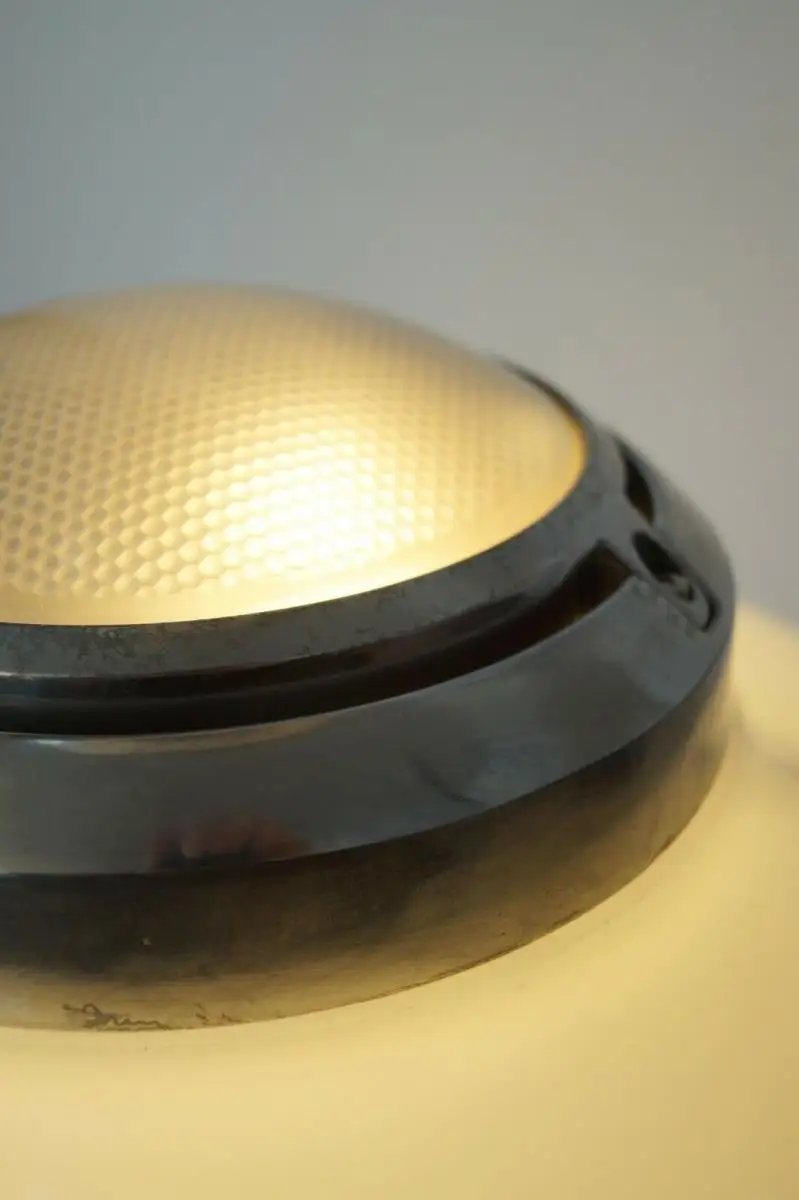 Lampe de table "COIT TOWER" Unikat, montage en aluminium, verre opale, hauteur totale d'environ 68 cm, toute nouvelle électricien Énorme et très lourde Lumières de fond/sol/tablette " COITTOWer ." Unicat mondial, seulement disponible une fois chez nous. Monture en Aluminium articial, nickelé avec une belle patine. Verre opal avec des bandes de peinture argentées, partiellement touché (voir photos détaillées). Couvercle final est une lampe propre avec couvercle pliable. Elle fixe l'écran et est intégrée par connexion. Hauteur totale environ 68cm, diamètre de l ' parapluie env. 40 cm - veuillez noter l\'énorme taille lors du choix de la lampe! Installation électrique entièrement renouvelée. Installation en PVC avec interrupteur à boucles. 2 x E27 version standard jusqu\\m max. 75 Watt, 1 x U14 version Standard, jusqu'à 25 Wt - nous recommandons vivement LED Light Luchtewehre Des pièces de rechange comme des vis ou des disques ont été renouvelées .