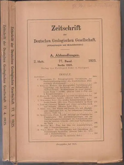 Deutsche Geologische Gesellschaft. - Aufsätze: Konrad Keilhack / W. Haack / Clemens Lebling / W. Soergel u. a: 77. Band 1925, komplett mit Heft 1 - 4: Zeitschrift der Deutschen Geologischen Gesellschaft, A. Abhandlungen. - Aus dem Inhalt: Konrad Keilhack
