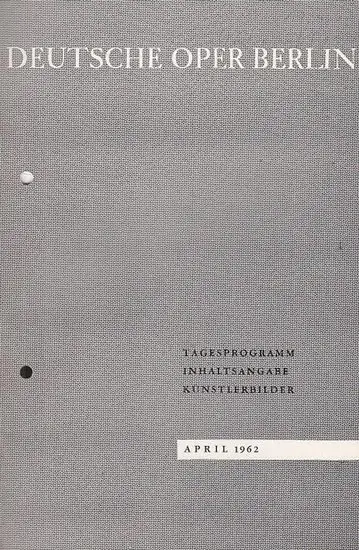 Deutsche Oper Berlin. - Hugo von Hofmannthal. - Richard Strauss: Programmheft April 1962. Mit Besetzungsliste zu: Ariadne auf Naxos. Musikalische Leitung: Heinrich Hollreiser / Inszenierung: Günther Rennert / Bühnenbild und Kostüme: Ita Maximowna / Darste