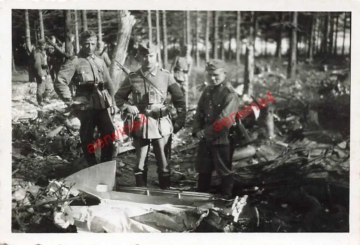 Deutsche Soldaten am abgeschossenem Flugzeug Feldlager Borrisow Ostfront