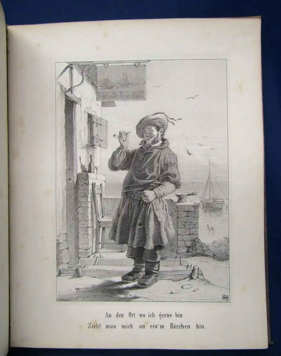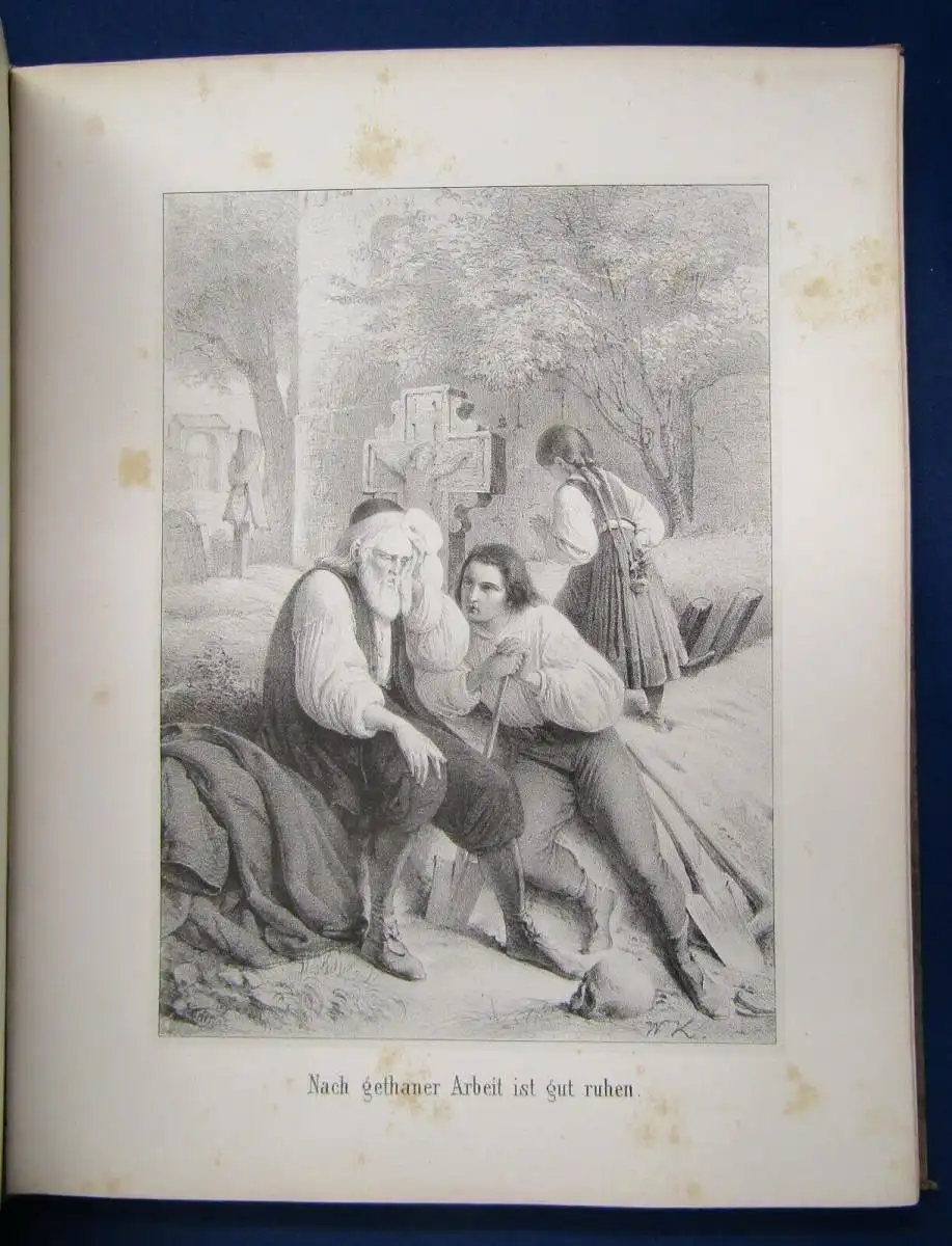 Titel, 20 Or. Lithographien, 40 S., 1 Bl.; S.; Leinen, Goldprägung auf dem Deckel, Rundumgoldschnitt