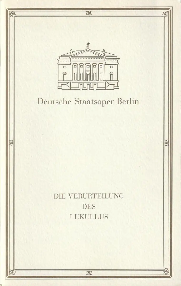 Deutsche Staatsoper Berlin, Georg Quander, Sigrid Neef, Claudia und Hans-Joachim Schauß: Programmheft Dessau / Brecht DIE VERURTEILUNG DES LUKULLUS Premiere 3. Juni 1992.