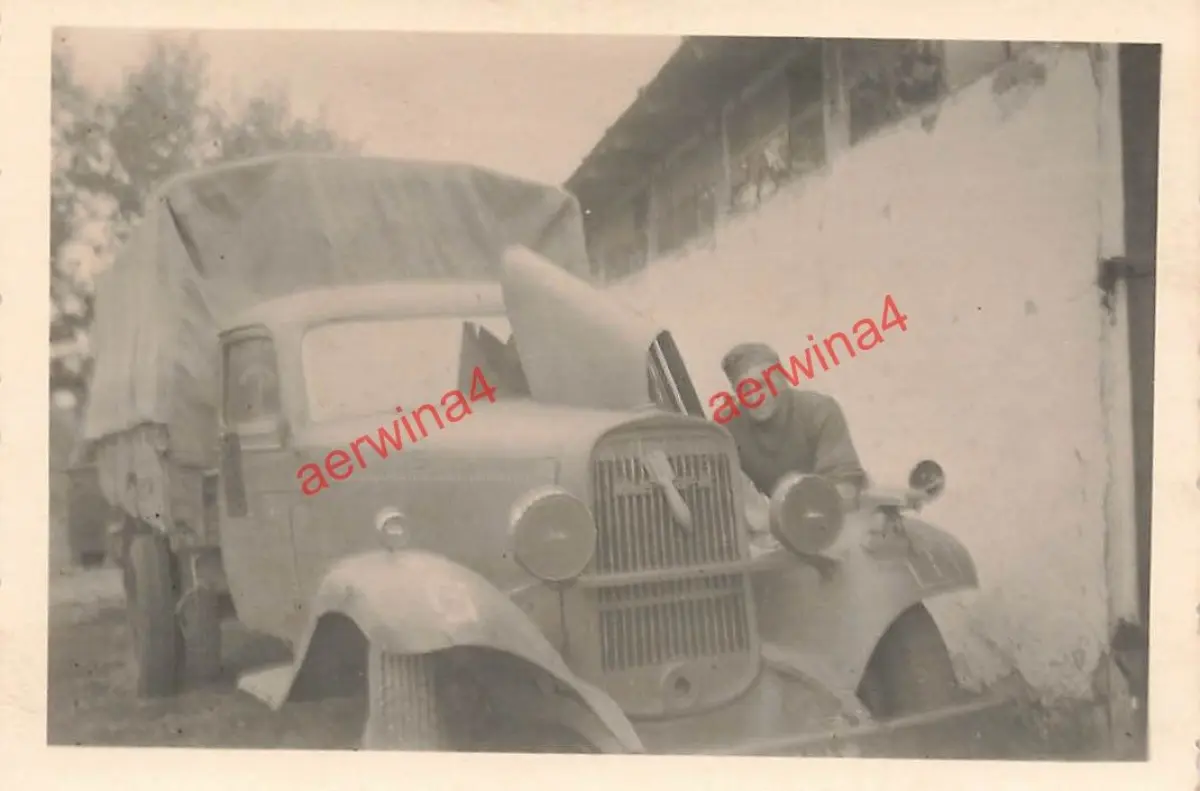 Deutscher Soldat mit LKW Opel Blitz Quartier bei Smolensk Russland Ostfront
