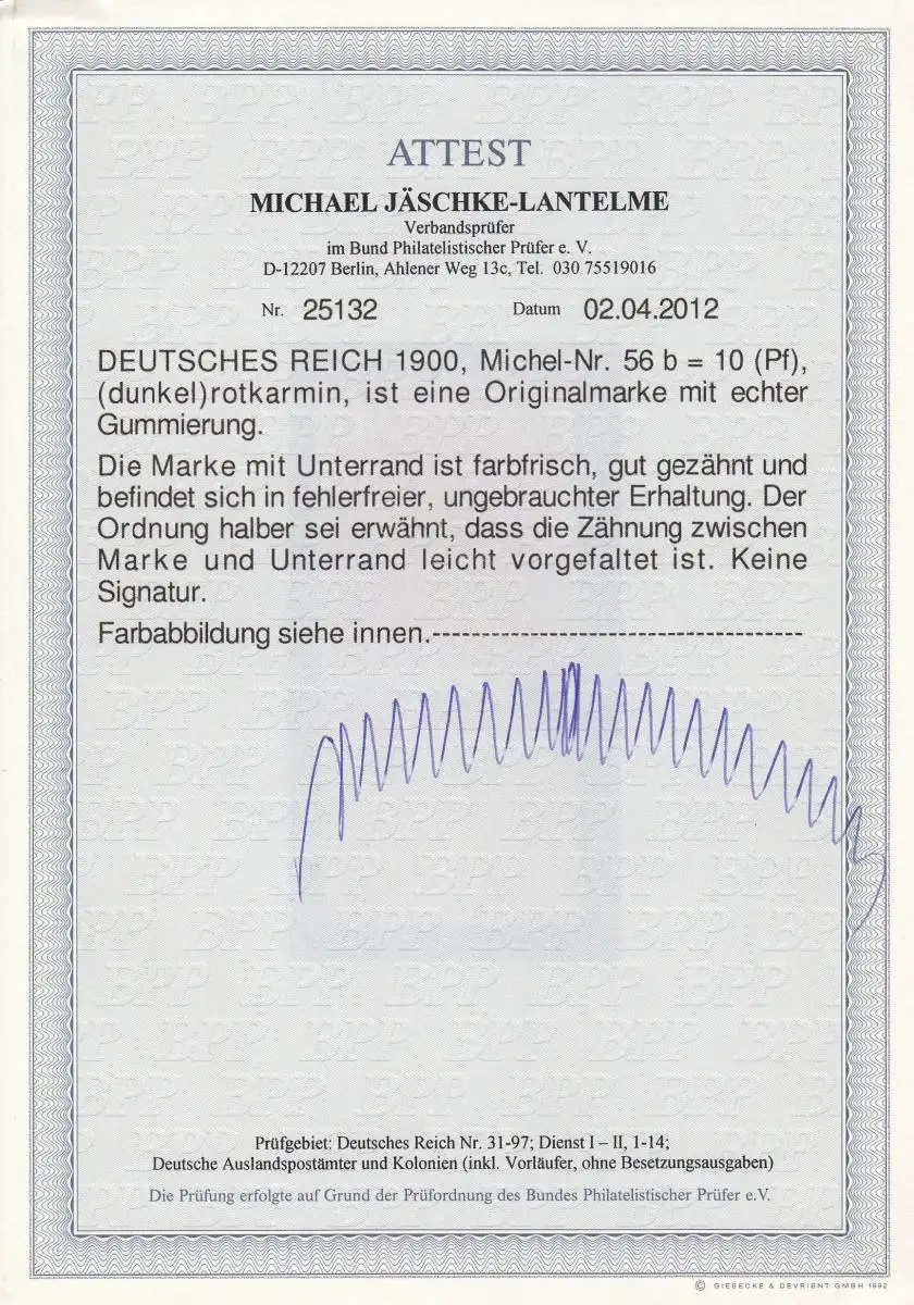 Reich allemand 1900: Min. 56b, véritable caoutchouc, Falz *, BPP Attest