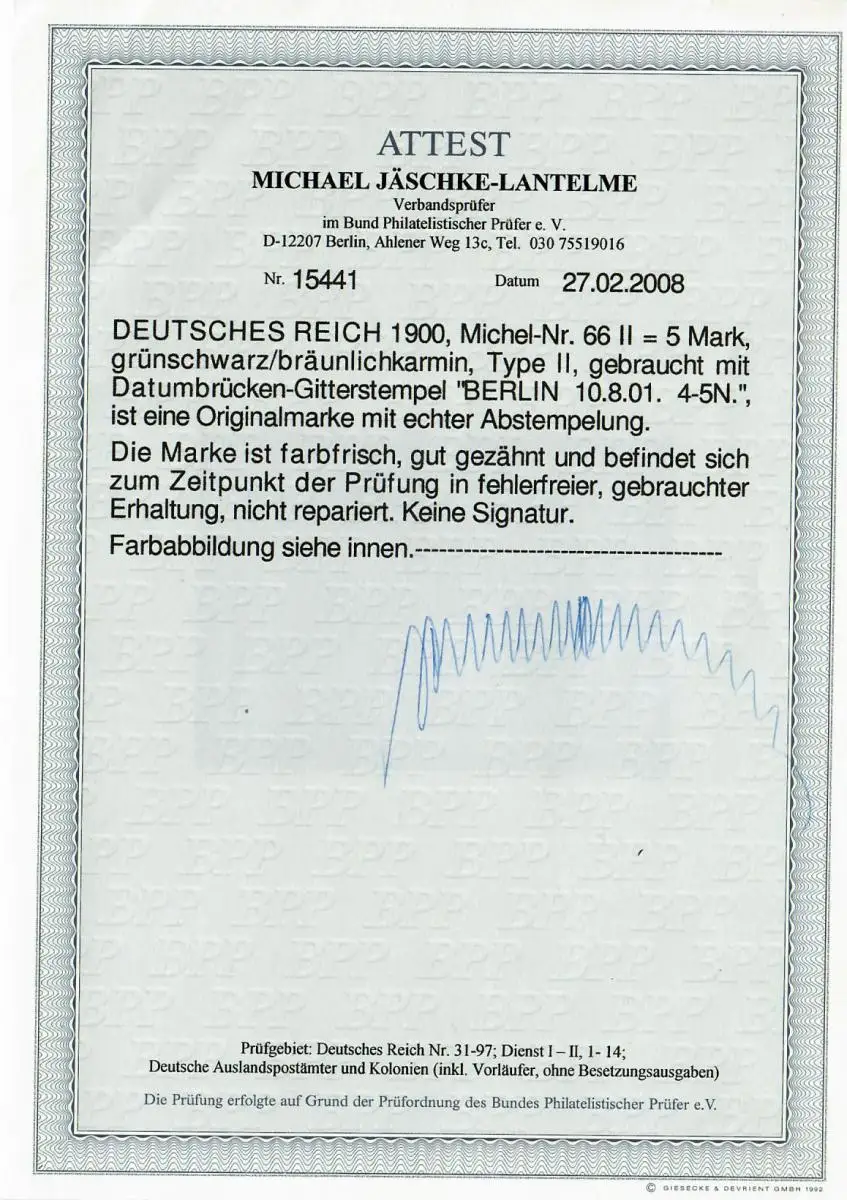 Reich allemand 1900: MiNr.: 66 II, cacheté Berlin, ECHT: BPP Attest