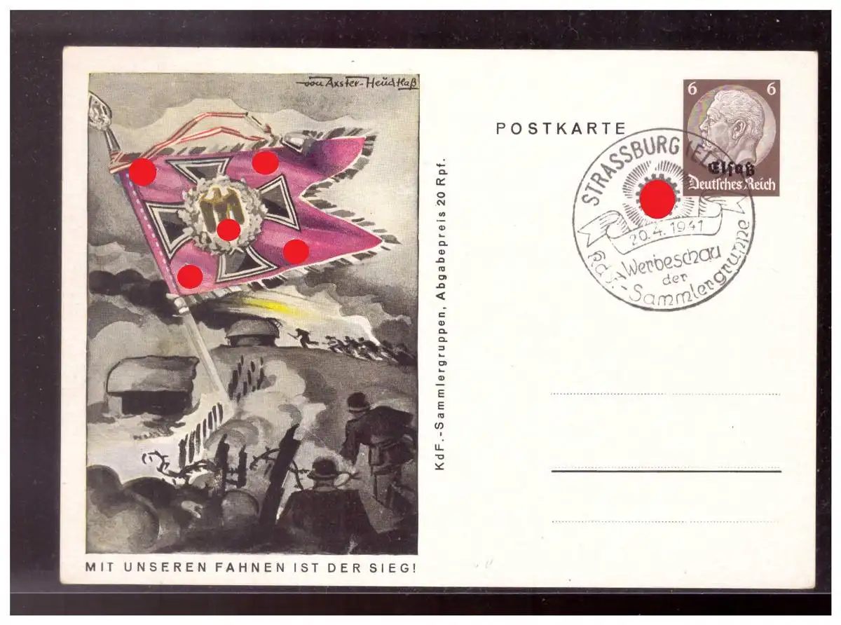 Dt- Reich (020031) WKII Elsaß Propaganda Ganzsache P5/ 05 Nebeltruppe, blanco gestempelt SST Strassburg 20.4.41