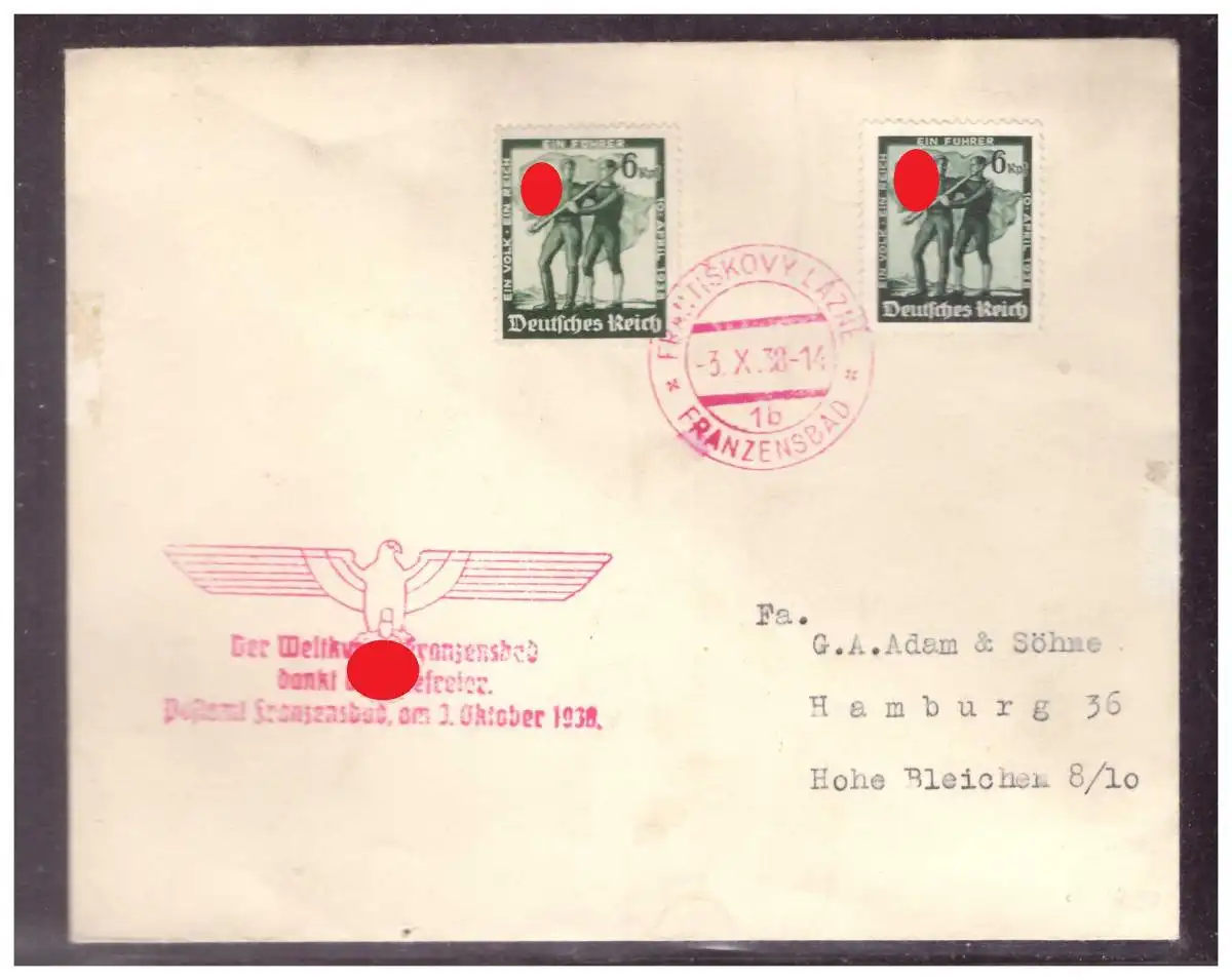 Sudetenland (020100) Propaganda Brief mit Befreiungsstempel Frenzensbad vom 3.10.1938