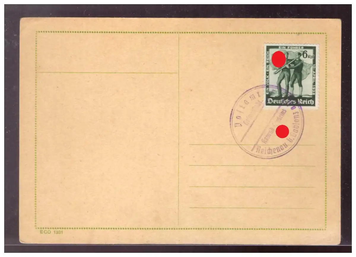 Sudetenland (020101) Propaganda Postkarte mit Befreiungsstempel Reichenau bei Gablonz Engel G15- 1041 ohne Datum
