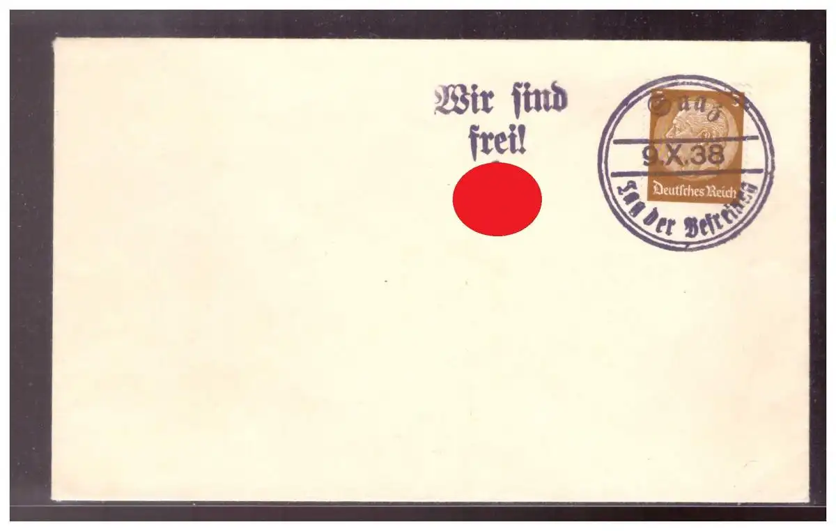 Sudetenland (020103) Propaganda Umschlag mit blanco Befreiungsstempel Wir sind frei, Tag der Befreiung Saaz 9.10.1938