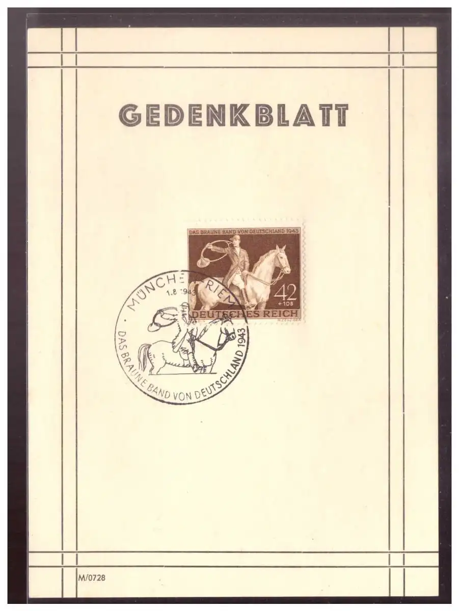 Dt.- Reich (020110) Propaganda Gedenkblatt MNR 854 mit SST München Das Braune Band von Deutschland am 1.8.1943
