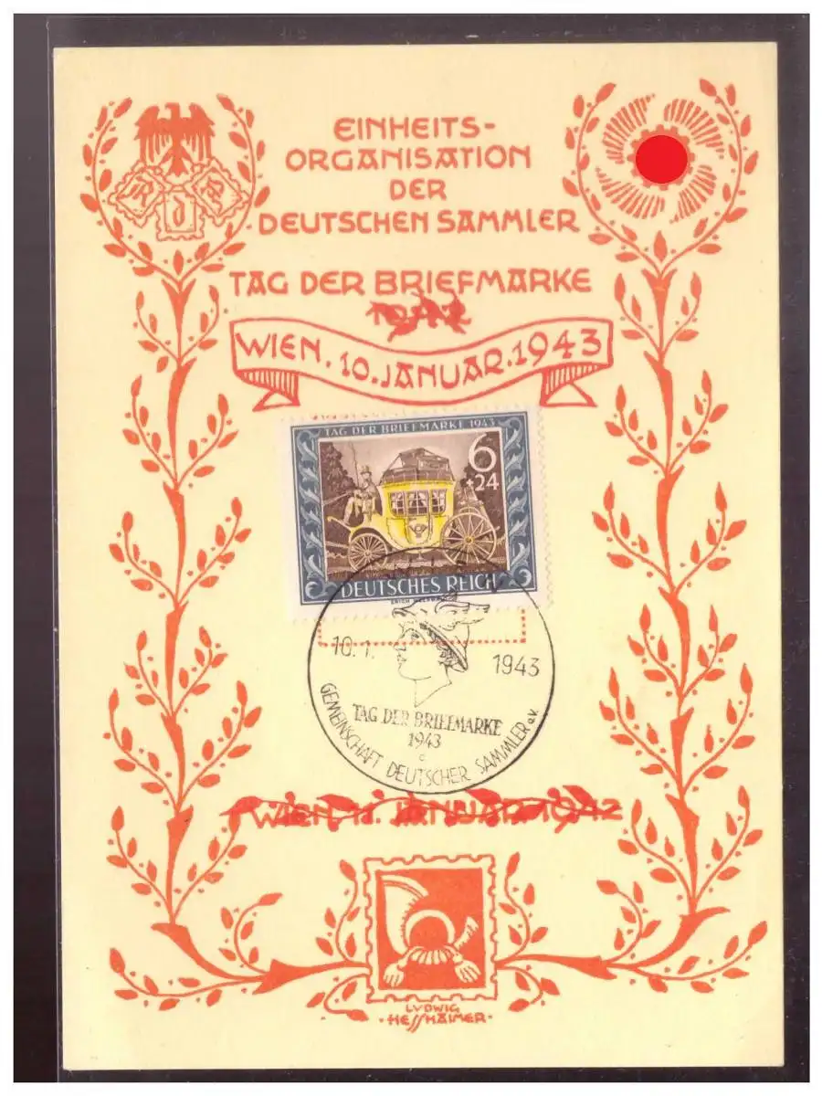 DT- Reich (020113) Propagandakarte, Tag der Briefmarke 1943, Einheitsorganisation der Deutschen Sammler, blanco gest