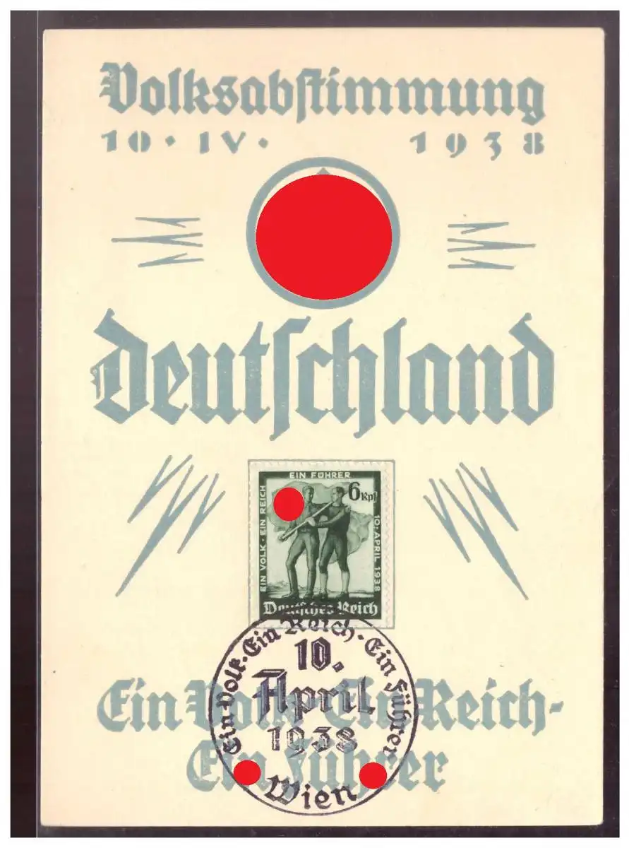 DT- Reich (020115) Propaganda, Gedenkarte Volksabstimmung Deutschland 10.4.1938, Ein Volk Ein Reich Ein Führer gestempel