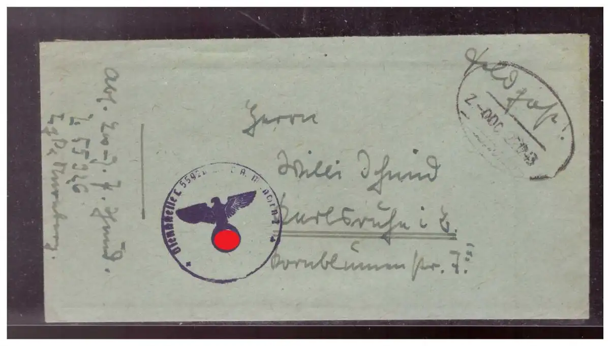 Dt- Reich (020130) Feldpost Brief mit Inhalt, gelaufen mit Zugstempel 28.12.1943