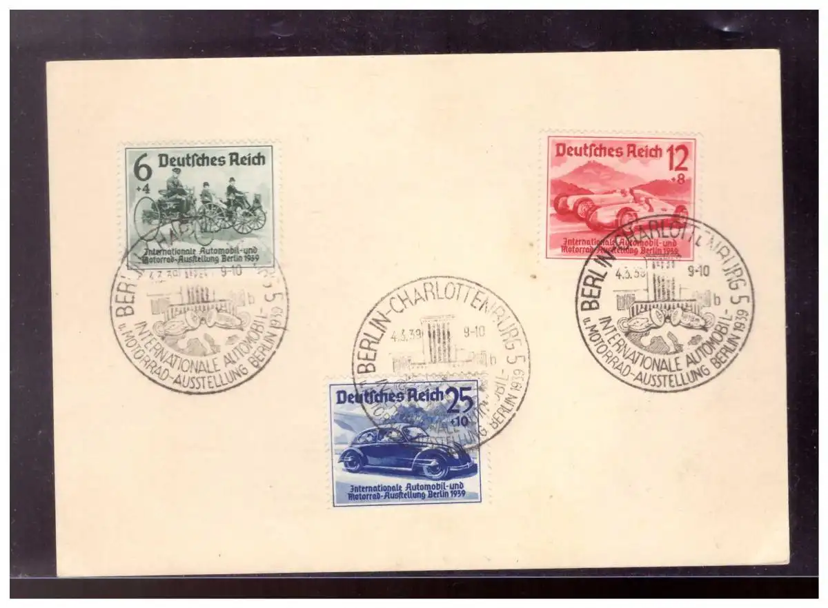 Dt- Reich (020147) Postkarte Int. Automobil u. Motorrad Ausstellung Berlin 1939 MNR 686/ 688 blanco gestempelt mit SST