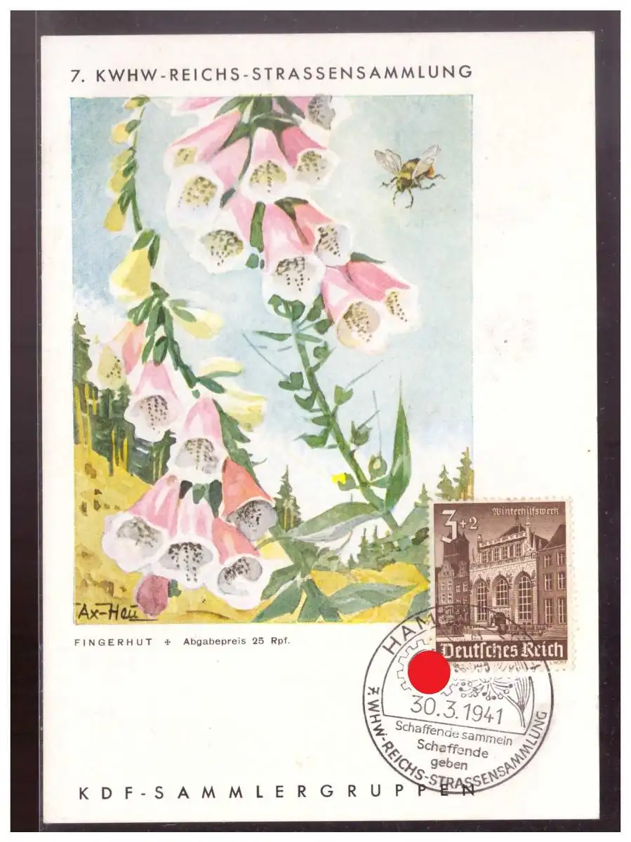 Dt- Reich (021478) Propagandakarte 7. KWHW- Reichs- Strassensammlung, Fingerhut, blanco gest. mit SST Hamburg