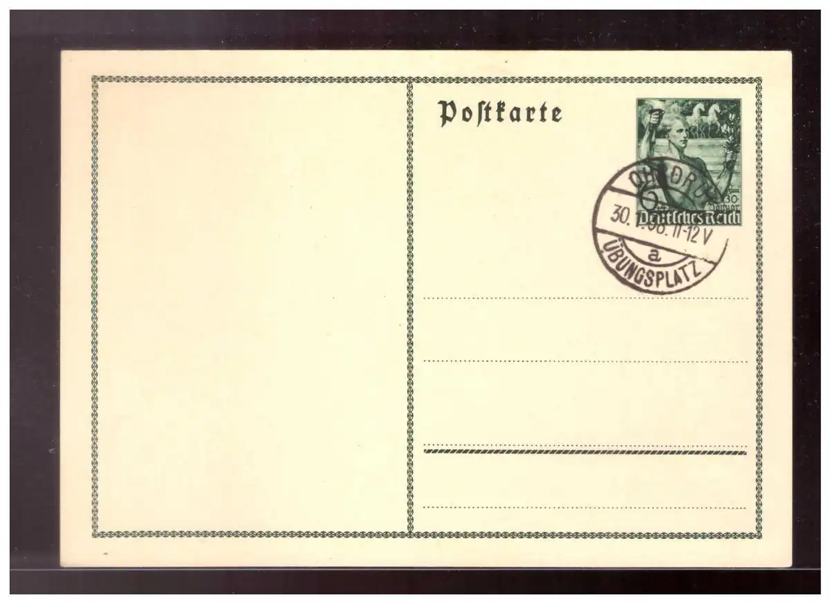 DT-Reich (021615) Ganzsache P267, Sonderstempel Übungsplatz Ohrdruf, blanco gestempelt am30.1.1938
