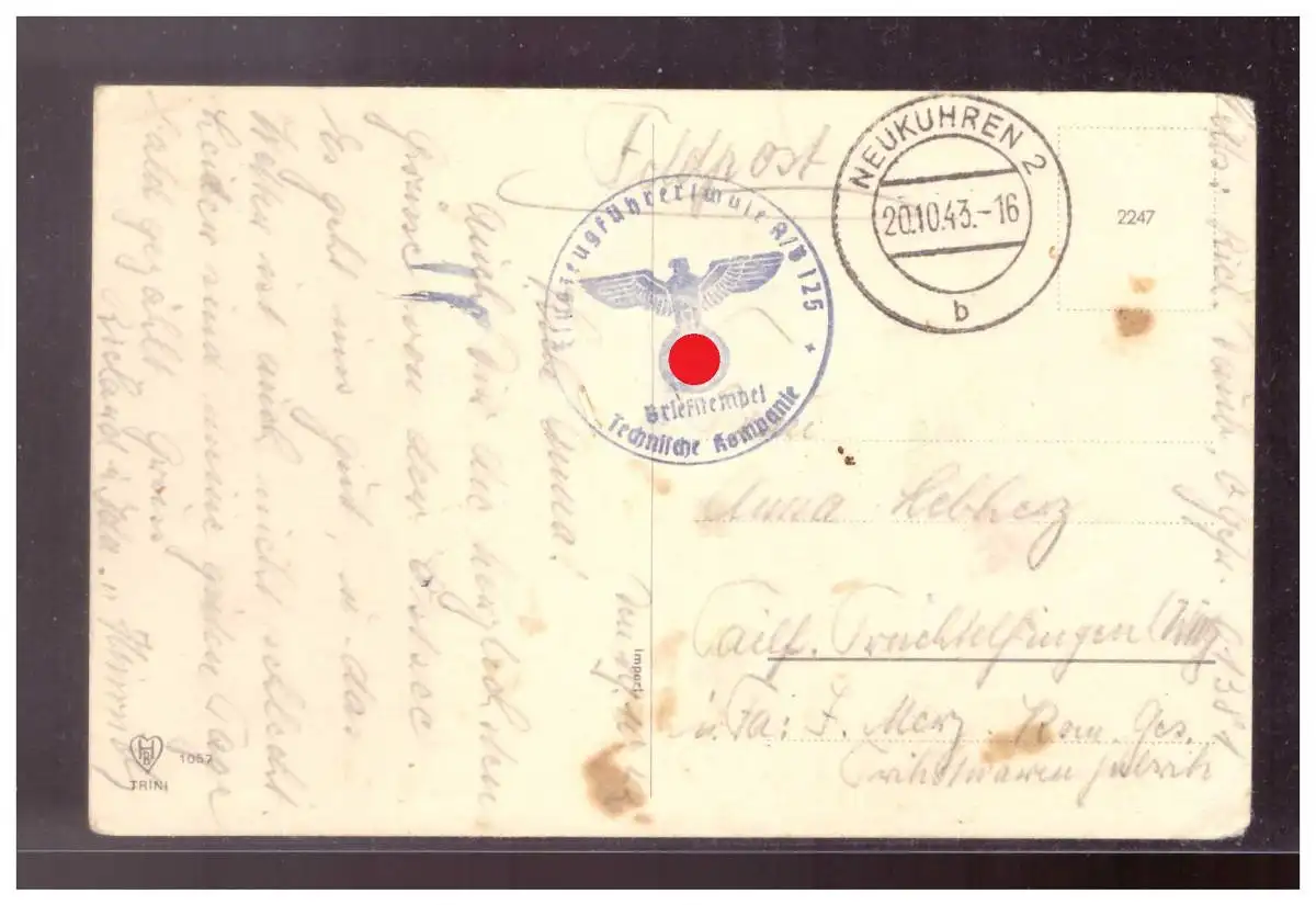 Dt- Reich (022001) WK II AK Blumen gelaufen mit Truppenstempel Flugzeugführerschule, Neukuhren 20.10.1943