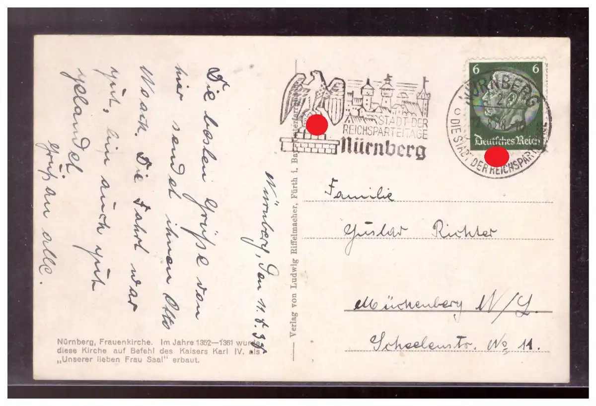 Dt- Reich (022282) Postkarte mit Postwerbestempel Stadt der Reichsparteitage, gelaufen Nürnberg