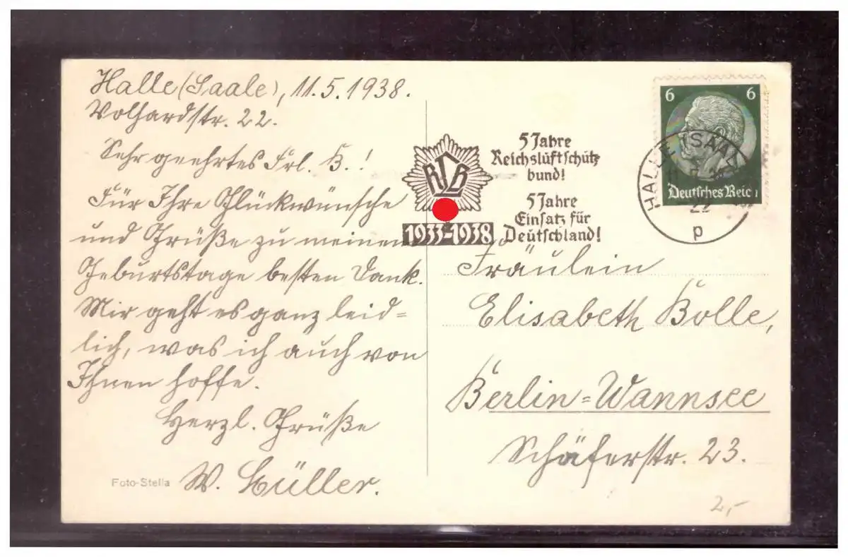 Dt- Reich (022287) Postkarte mit Postwerbestempel 5 Jahre Reichsluftschutzbund, 5 Jahre Einsatz für Deuschland