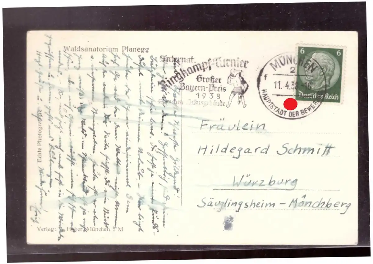 Dt- Reich (022292) Postkarte mit Postwerbestempel Int. Ringkampf-Tunier Großer Bayern Preis, gelaufen