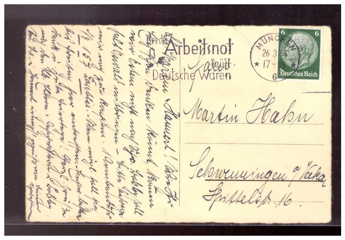 Dt- Reich (022297) Postkarte mit Postwerbestempel Brecht Arbeitsnot kauft Deutsche Waren, gelaufen München