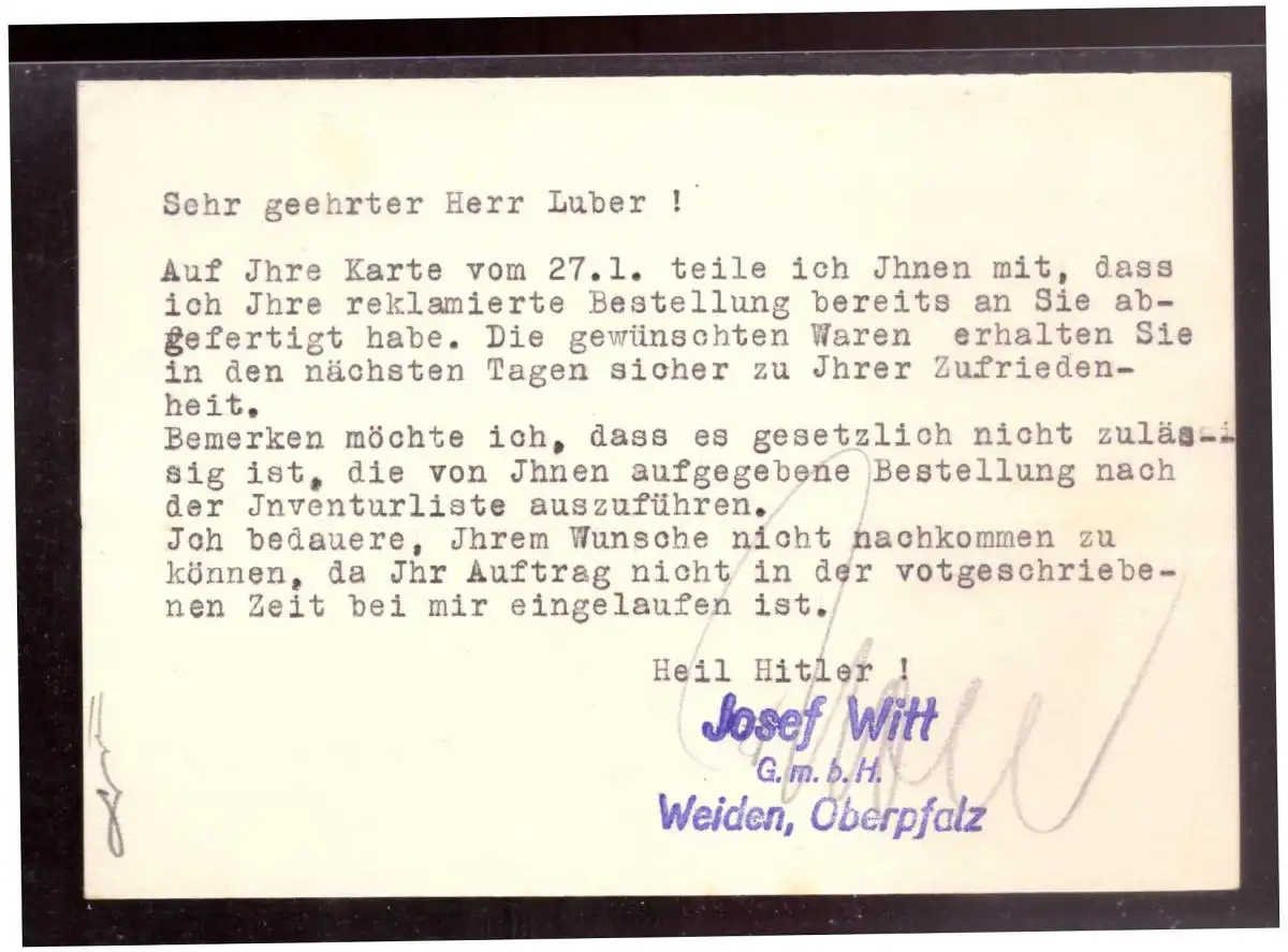 Dt- Reich (022331) Firmenpostkarte vorgedruckt mit Freistempler Josef Witt Weiden, Webwaren Fabrikation