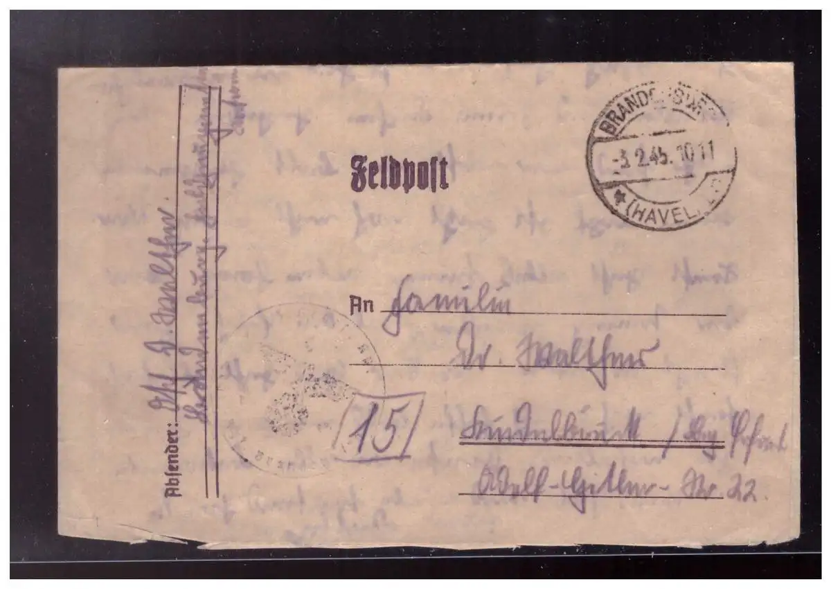 Dt- Reich (022796) Feldpost Faltbrief gelaufen Brandenburg/ Havel 3.2.1945 (Späte Post)