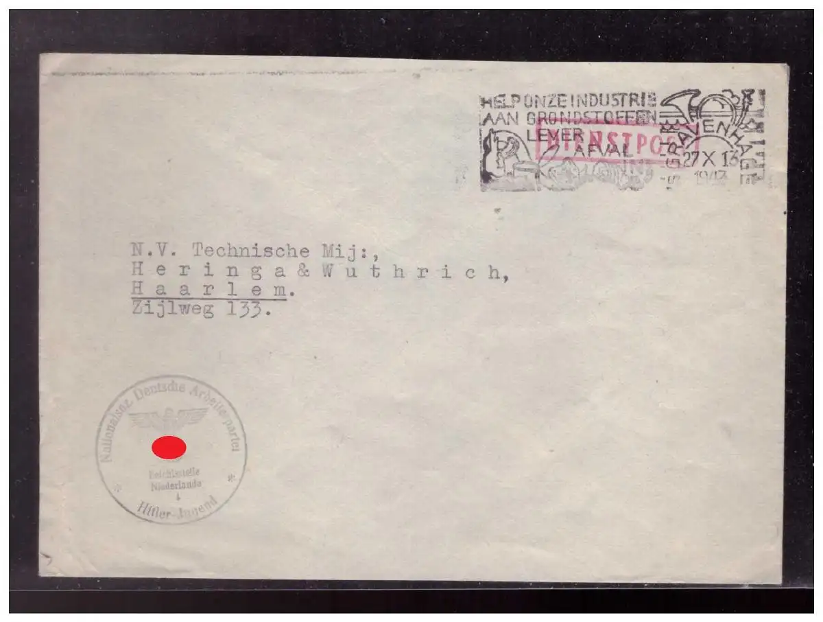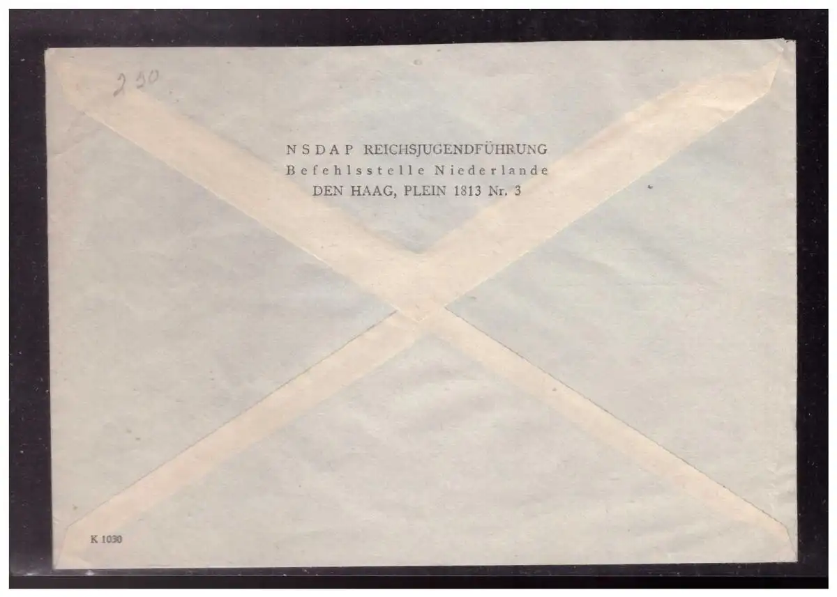 DT- Reich (023292) Dienstbrief WK2 NSDAP, Dienststelle Niederlande, Hitler- Jugend, gelaufen 27.10.1943