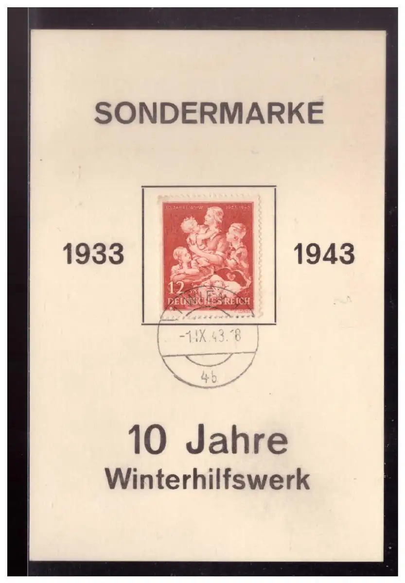 DT- Reich (024130) Propaganda Gedenkblatt Postkartegröße 10 Jahre Winterhilfswerk (WHW) gestempelt Wien 1.9.1943