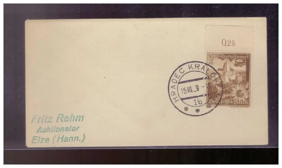 Dt- Reich (024567) Stempel Hradec Kralove (deutsch Königsgrätz) Nordböhmen gestempelt 15.3.1939