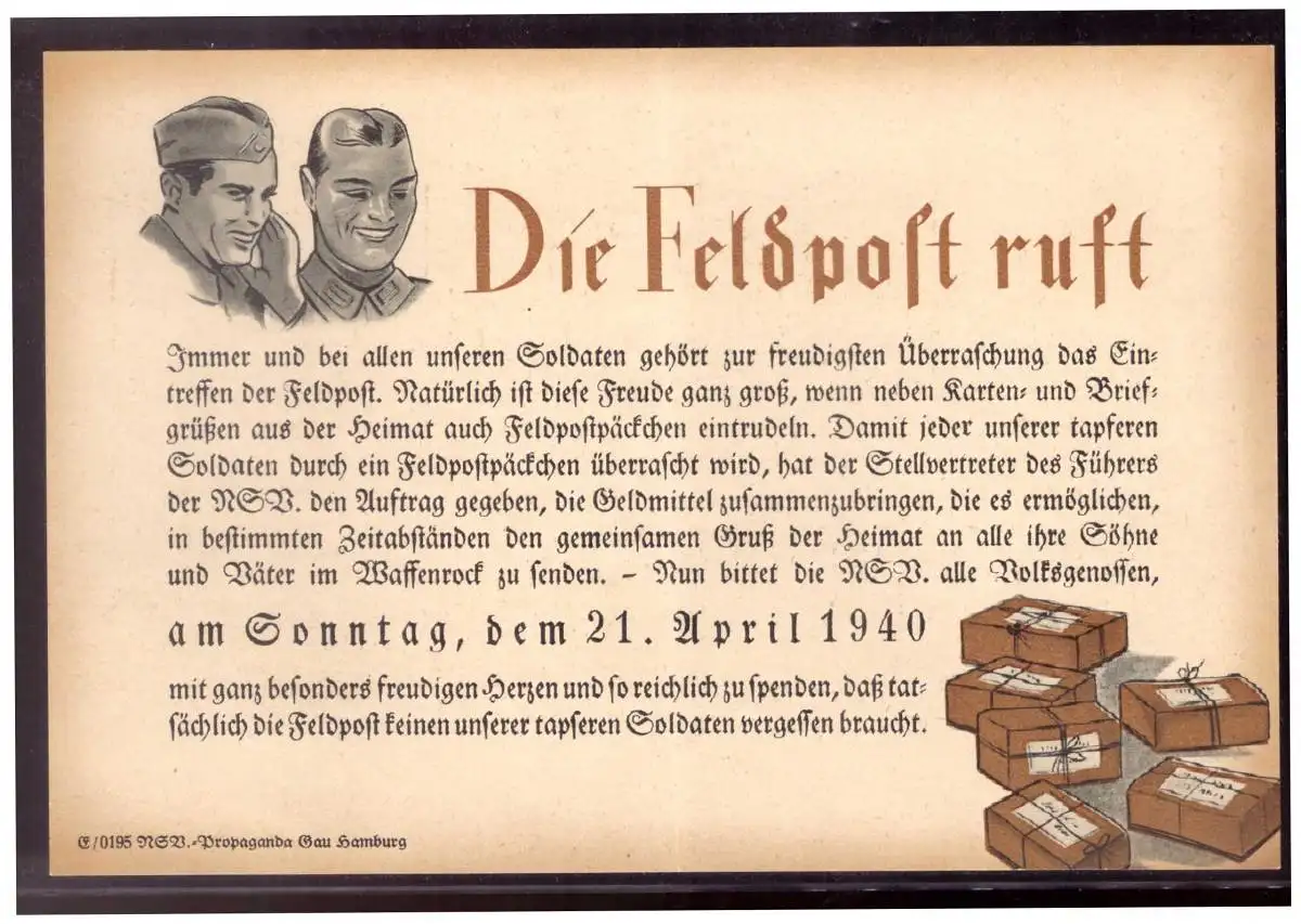 Dt- Reich (020602) Propaganda Feldpost Gau Hamburg "Die Feldpost ruft" vom 21.4.1940, gefaltet