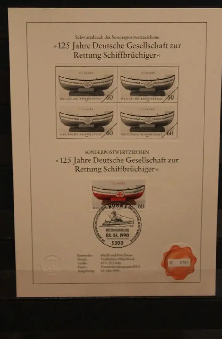 Deutschland 1990, Schwarzdruck: Gesellschaft zur Rettung Schiffbrüchiger, ESST, nummeriert, limitiert, MiNr 1465