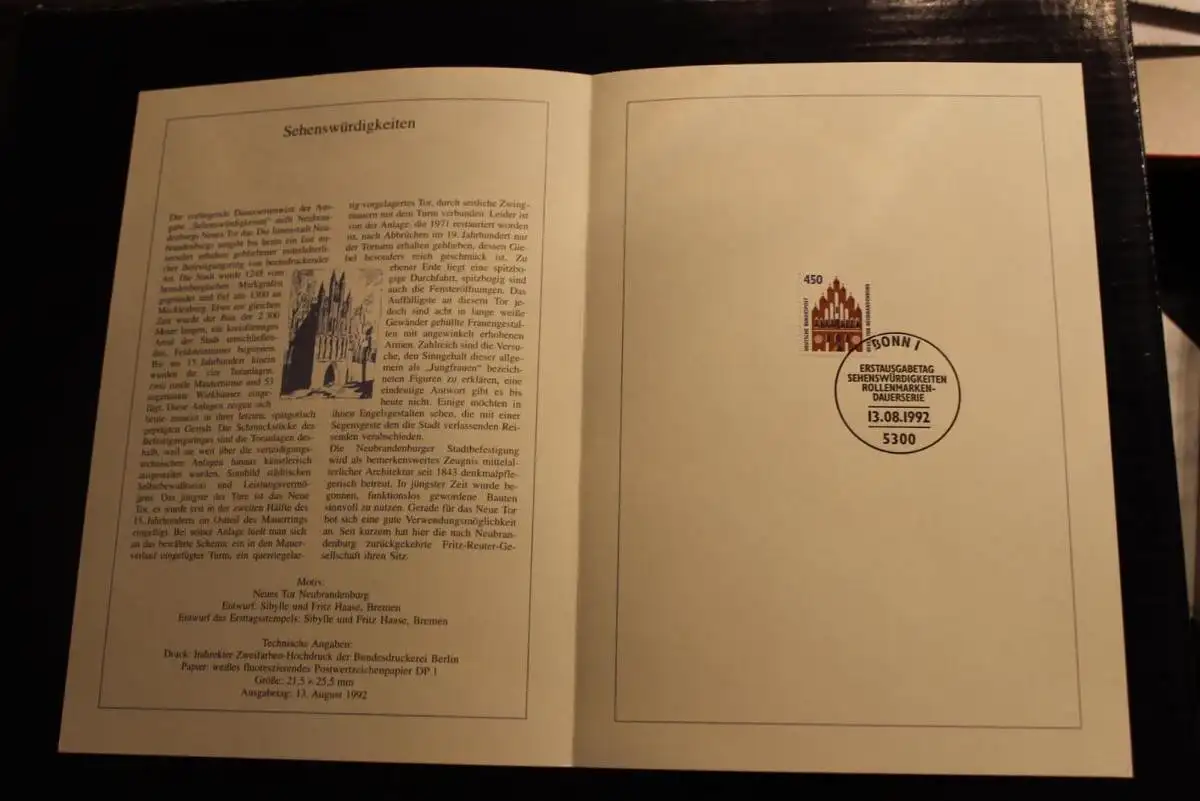 Deutschland 1992; Jahressammlung-ETB: Sehenswürdigkeiten Neues Tor Neubrandenburg, MiNr. 1623, bitte lesen