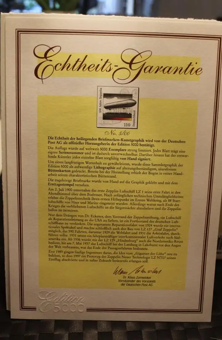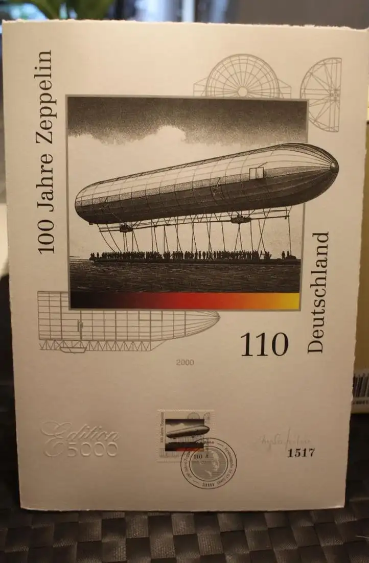 Deutschland 2000: 100 Jahre Zeppelin , Briefmarkengraphik; MiNr. 2128, limitiert, nummeriert