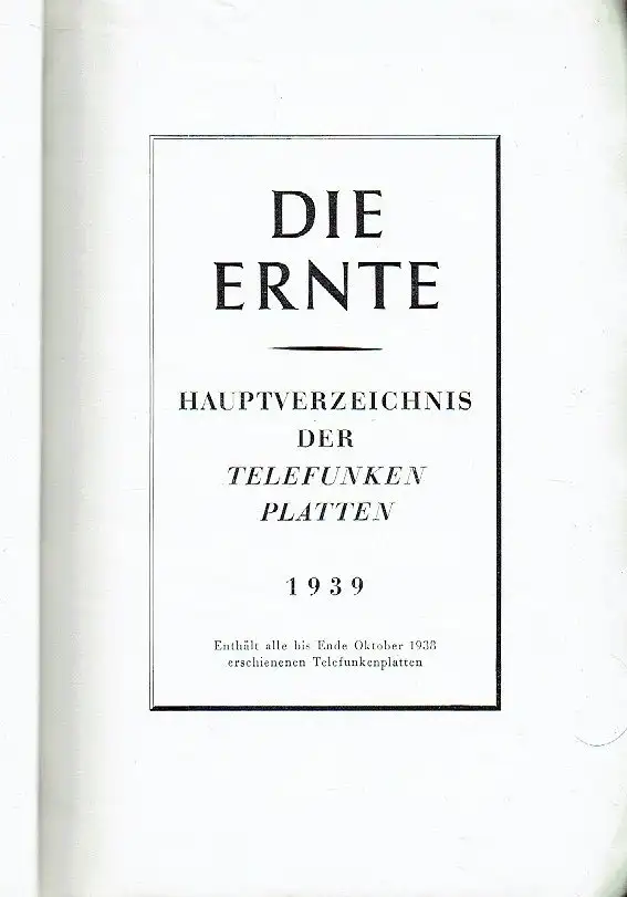 Die Ernte - Hauptverzeichnis der Telefunkenplatten 1939 Enthält alle bis Ende Oktober 1938 erschienenen Telefunkenplatten.