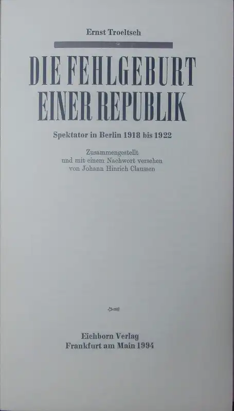 Titel: Die Fehlgeburt einer Republik. Spektator in Berlin 1918 bis 1922 (= Die andere Bibliothek)